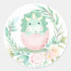 Sticker Rond Baby shower vert rose mignon Dinosaur