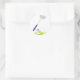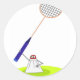 Belle illustration de dessin d'un bloc de badminton tenant une raquette de badminton prête pour un jeu. Image disponible sur divers cadeaux et produits. Autocollants.