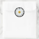 Des autocollants ronds à utiliser sur des livres, des classeurs, des carnets, des livres à gratte-ciel et bien d'autres qui présentent l'image d'une fleur de marguerite blanche sur un arrière - plan noir. Un joli design floral ! Sélectionnez votre taille d'autocollant.