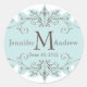 Sticker Rond Balayages Bleus Monogramme Mariage Favoriser Stick
