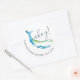 Ajoutez une touche de joie côtière à votre fête sur le thème des fonds marins avec ces autocollants de baleine et d'étoile de mer aquarelle en bleu marine. Le design unique présente mon œuvre d'art aquarelle originale dans des nuances de bleu et de vert avec le mot "Ahoy". Personnalisez avec le(s) nom(s) et la date ou ce que vous voulez. Ils sont parfaits comme sceaux d'enveloppe ou pour être utilisés comme autocollants de faveur. Pour voir la papeterie nautique assortie, visitez www.zazzle.com/dotellabelle