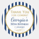 Élégant autocollant d'anniversaire avec bandes bleu marine et blanc avec cadre sophistiqué or parties scintillant accent. Ces autocollants d'anniversaire à la mode et élégants seront un succès pour tout décor de fête d'anniversaire et comme étiquettes de faveur. Super pour la 21ème 30ème 35ème 40ème 45ème 55ème 60ème 65ème 70ème 75ème 80ème 85ème 90ème 95ème, 100 et tout âge ! Ils disent "Merci d'être venu".