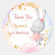 Ballerina fête d'anniversaire mignon dansant lapin pastel poule couleurs douces Merci sticker modèle pour une fête d'anniversaire de filles.