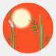 Soleil doux brillant à l'arrière, gros plan de bambou avec une délicate libellule assise dessus