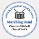 Cet autocollant moderne de fanfare du lycée bleu présente le nom de l'élève et du groupe sous la batterie. Customisez les membres symphoniques, d'un ensemble de vent ou d'un groupe de concert ou leur directeur pour un grand cadeau de remise de diplômes.