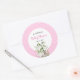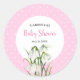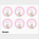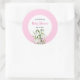 Sticker Rond Baptême Fleurs de Neige Blanches Petits Points Ros