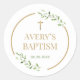 Sticker Rond Baptême moderne courre d'or croix personnalisable