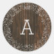 Un élégant autocollant de mariage rustique illustrant le souffle du bébé sur un arrière - plan inspiré du bois d'écorce. Personnalisez avec votre monogramme.