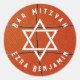 Basketball thème Bar Mitzvah autocollant avec un arrière - plan de basket orange et des accents blancs. Cet autocollant de basketball Bar Mitzvah ou enveloppe scellée est élégant et moderne. Cet autocollant de basketball sur le thème Bar Mitzvah présente une étoile juive de David. Les couleurs de ce design Bar Mitzvah sur le thème du basket sont orange et blanc. Le nom de votre fils est en caractères gras. Si vous envisagez d'héberger un club de basket sportif sur le thème du Bar Mitzvah, alors cet autocollant de basket-ball Bar Mitzvah peut être juste le choix parfait.