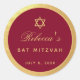 Sticker Rond Bat mitzvah Burgundy Faux Gold Élégante calligraph