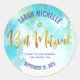 Sticker Rond Bat mitzvah Gold Foil Script, Aquarelle Turquoise