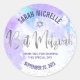 Sticker Rond Bat mitzvah Purple Aquarelle Silver Foil Script