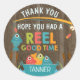 Pêche Bobine Bon Temps Merci Anniversaire Sticker pêche mignonne, de poisson ou de bobines thème d'anniversaire de garçon autocollant de faveur. Même invitation de design est également disponible au magasin.