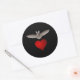 Sticker Rond Batty Bat love Gray Bat avec Red Heart sur Black