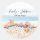Sticker Rond Beach Seashell Ocean Mountains Nuage Aquarelle