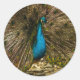 Sticker Rond Beau Peacock Bleu avec Plumes Open Tail