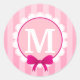 Sticker Rond Beau rose blanc design personnalisé Monogramme
