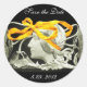 STICKER ROND BEAUTÉ ÉLÉGANTE / FEMME AVEC BOW JAUNE ET FLEURS