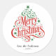 Sticker Rond Beautiful Calligraphy Merry Christmas Tree Custom