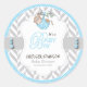 Sticker Rond Bébé Bleu, Baby shower de singe gris blanc