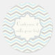 Sticker Rond Bébé bleu moderne, grey, ivory chevron