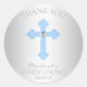 Sticker Rond Bébé Croix Bleue Baptême / Christening Merci garço