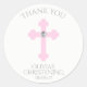 Sticker Rond Bébé Croix rose Baptême / Christening Merci fille