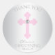 Sticker Rond Bébé Croix rose Baptême / Christening Merci fille