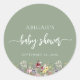 Sticker Rond Bébé en fleur Fleur sauvage Sage Baby shower vert