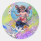Sticker Rond BÉBÉ FAIRY AVEC DES POIDS EN PARKLES bleu rose ver