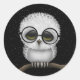Sticker Rond Bébé mignon Chouette neigeuse portant des lunettes