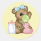Sticker Rond Bébé mignon ours fille avec Bébé bouteille et béta