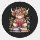 Sticker Rond Bébé mignon vache Highland avec livre de lecture v