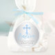 Sticker Rond Bébé moderne Croix Bleue Baptême Garçon Merci