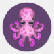 Sticker Rond Bébé rose mou pieuvre sur violet