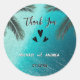 Ajoutez un autocollant pour vos faveurs de mariage qui correspond parfaitement au thème de votre mariage. Ce design a une image qui rend votre mariage sur la plage inoubliable pour votre famille, vos amis et vos invités. Il a un fond océanique frais avec des feuilles de palmiers qui montrent une ambiance de saison estivale et de destination. Personnalisez les textes avec des polices mignonnes et des éléments graphiques de cœur.