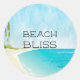 Belle Beach Bliss Classic Round Sticker Parfait pour ceux qui rêvent de vie sur la plage. Sandy Beach et Blue sky. Avec les mots "Beach Bliss