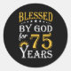 Sticker Rond Béni Par Dieu Pendant 75 Ans Heureux 75E