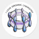 I Love Organic Chemistry autocollant avec une aquarelle illustration d'un modèle de molécule de benzène montrant sa liaison délocalisée créée à partir de l'hybridation sp d'orbitales atomiques. J'aime la chimie, en particulier la chimie organique. Cela a été pour moi le plus inspirant de tout ce que j'ai étudié à l'université. Ce tee est très bien pour un étudiant en chimie et un professeur de chimie