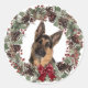 Regardez ce beau visage de Berger Allemand encadré par un joli cône de pin aquarelle et une couronne de Fêtes aux baies rouges ! L'image est au centre sur un arrière - plan blanc. Un arc rouge brillant donne un peu d'éclat de Noël à la couronne. Parfait pour vos forfaits vacances ou votre correspondance.