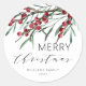 Accentuez vos cadeaux de Noël, faveurs ou courrier avec cet autocollant rond classique de vacances moderne avec des baies d'hiver aquarelle, des tiges de feuilles botaniques. Personnalisez-le avec votre nom de famille et votre année.