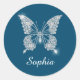 Sticker Rond Beurre Diamant Blanc, Nom du script, Bleu Océan