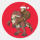 Bigfoot équitation Dinosaur Raptor Christmas Tree Lights Family Matching Design Cadeau Classic Round Sticker Classic Collection.