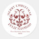 Conception de Noël bilingue personnalisée Ajoutez une touche de charme festif à votre emballage de vacances, vos cadeaux ou vos documents de marketing avec cet autocollant rond avec un design bilingue "Joyeux Noël - Feliz Navidad". L'élégante typographie bordeaux et le nom de famille ou d'entreprise personnalisable en font un moyen parfait d'ajouter une touche personnelle à tout article. Le motif floral et oiseau mignon apporte une touche moderne et élégante, ce qui le rend idéal pour l'emballage cadeau, la fermeture d'enveloppes ou la marque de vos produits pendant la saison des fêtes. Customisez le vôtre aujourd'hui et diffusez un peu de joie de Noël avec chaque détail!
