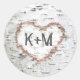 Sticker Rond Birch Bark Heart Rustic Mariage