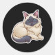 L'autocollant Birman présente la race de chat royal connue pour ses yeux bleus saisissants, sa fourrure soyeuse et ses points de couleur uniques sur ses oreilles, son visage, ses pattes et sa queue. Avec un tempérament doux et affectueux, cet autocollant capture l'élégance et le charme du Birman, réputé pour sa présence gracieuse et sa nature aimante. Parfait pour les amoureux de les chats qui apprécient une combinaison de beauté et de douceur de compagnie dans leurs amis félins.