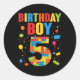 Sticker Rond Birthday Boy 5 Year Old Building Blocks 5th Birthd