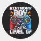 Sticker Rond Birthday Boy Time Gamer Level Up Video Game