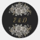 Sticker Rond Black And Gold Gothic Floral Roses Monogram
