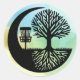 Disc golf themed stickers. Black and white disc golf basket and tree roots silhouette.